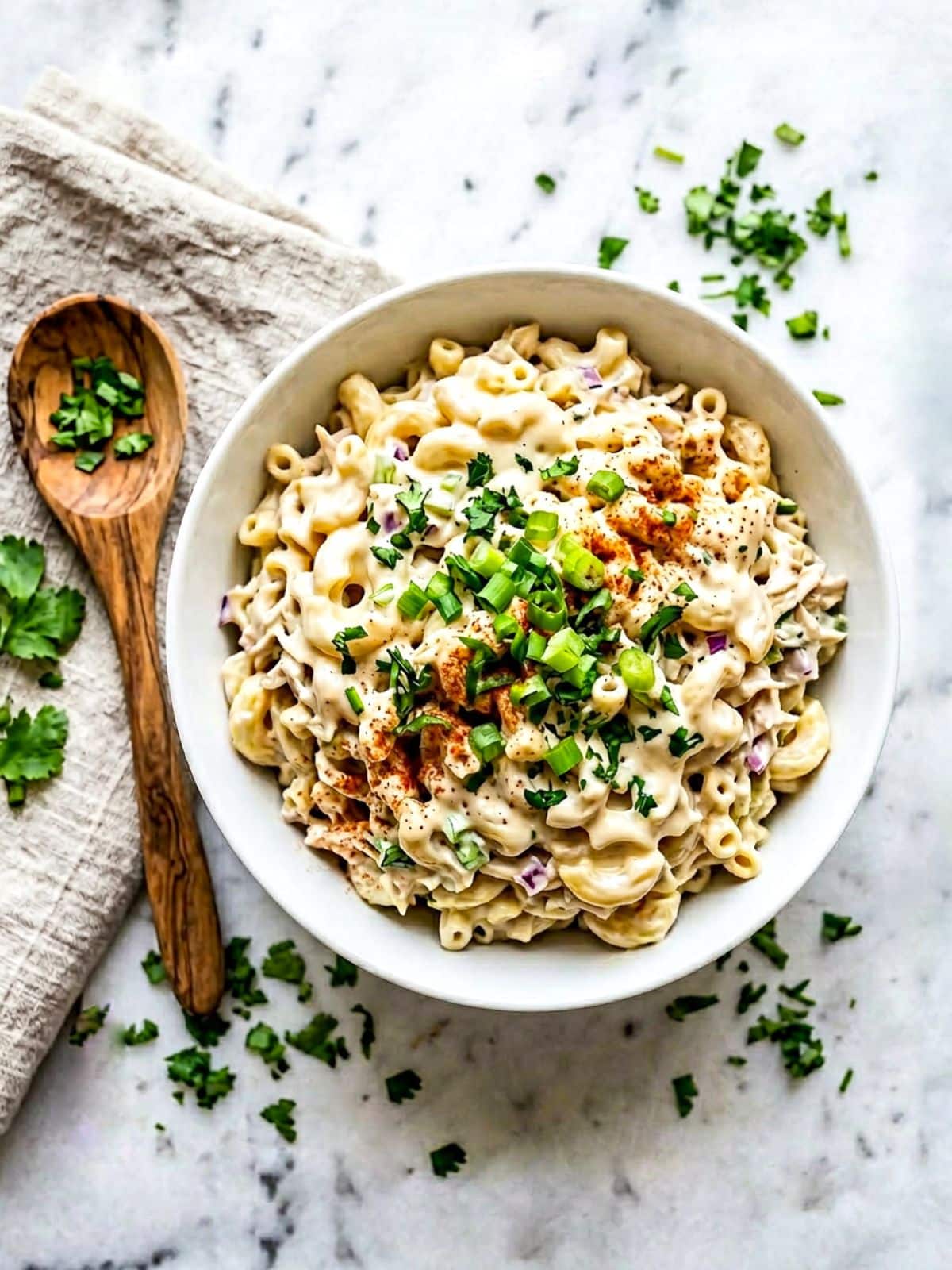 - Paprika garnish. A light sprinkle of paprika not only adds color but gives the salad that classic Latin-style macaroni salad look.