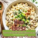 In Puerto Rico, and throughout all Latin America, we love our ensaladas, fresh, flavorful, and always part of our gatherings. From classics like ensalada de papa, ensalada de garbanzos, and ensalada de granos, to simple favorites like ensalada de atún, there's a version for every meal and every occasion. Creamy, zesty, or packed with veggies and protein, these salads are a staple in our homes. Today, I'm sharing one of my personal favorites: Ensalada de Coditos con Pollo, a Puerto Rican macaroni salad made with only 5 ingredients that's rich, creamy, and full of flavor.